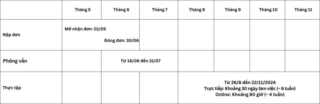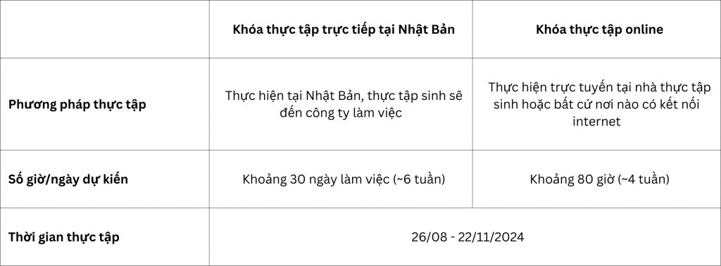 Năm 2024, chương trình cung cấp hai hình thức thực tập như sau: