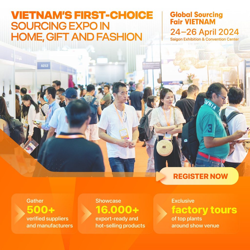 Triển lãm B2B SOURCING hàng đầu tại Việt Nam trong lĩnh vực Đồ gia dụng, Quà tặng và Thời trang. Với hơn 500 nhà triển lãm và hơn 16.000 sản phẩm sẵn sàng xuất khẩu phù hợp với mọi nhu cầu tìm nguồn cung ứng – từ quy mô nhỏ đến quy mô lớn, từ những số lượng nhỏ đến số lượng lớn.