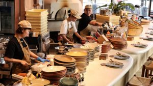 Nhân viên từ các quốc gia châu Á khác chuẩn bị cho khai trương địa điểm Pizza 4P’s ở Tokyo. (Ảnh của Ken Kobayashi).